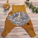 Mitwachshose mit grosser, durchgehender Tasche (Bereich des gemusterten Stoffs), mit Fake-Kordel und kleinem Kunstlederpatch