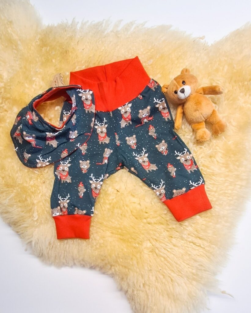 Ideal als Geschenk Winterliches Set, bestehend aus einem Sabber-Lätzli und einer Mitwachshose